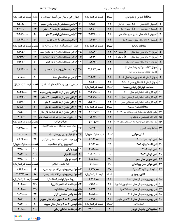 لیست قیمت محافظ برق تیراژه