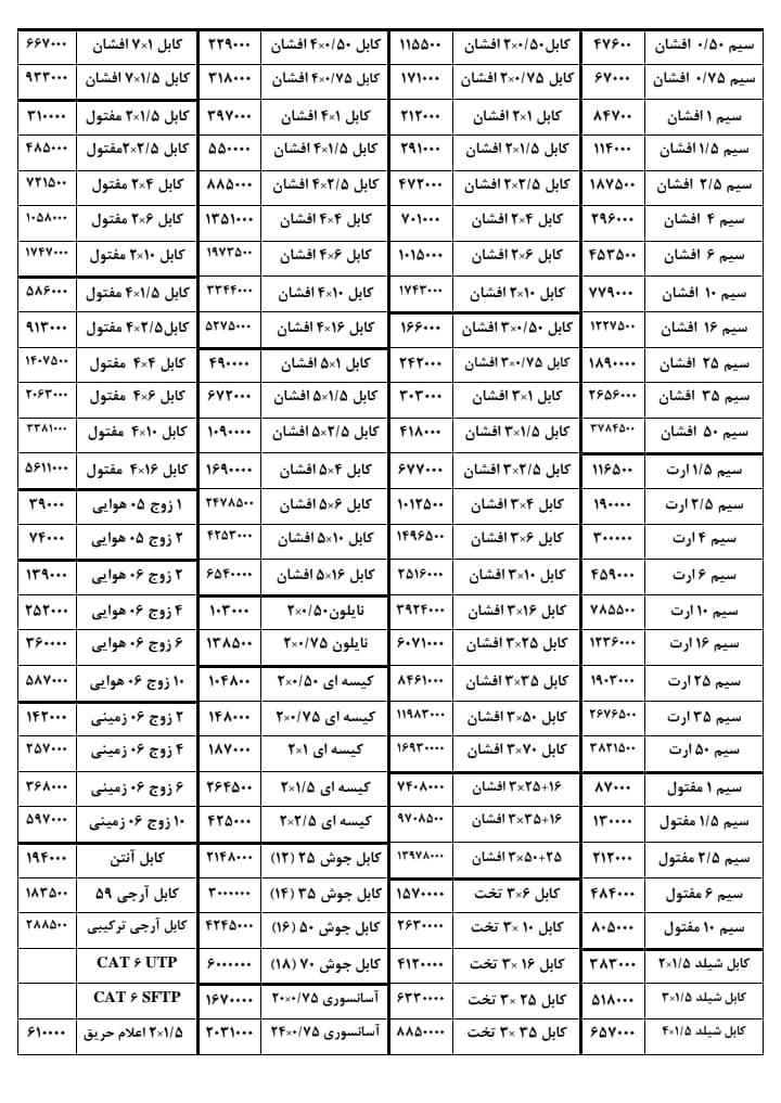 لیست جدید کابل کمان ۱۴۰۳ _ لیست سیم کمان ۱۴۰۳ کابل کمان _ قیمت کابل کمان _توزیع سیم کمان _قیمت سیم ۱.۵ کمان _قیمت سیم ۲.۵ کمان