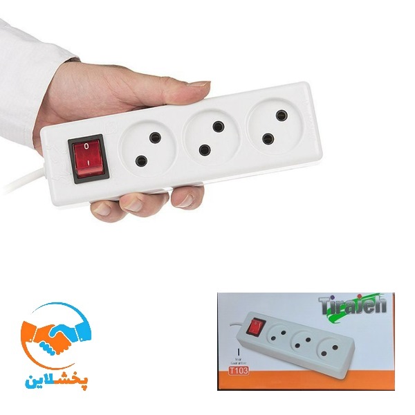 سه راهی تیراژه از انواع رابط برق این شرکت است این محصول دارای سه خروجی پریز و کابل 1/80 متری و کلید دار است .